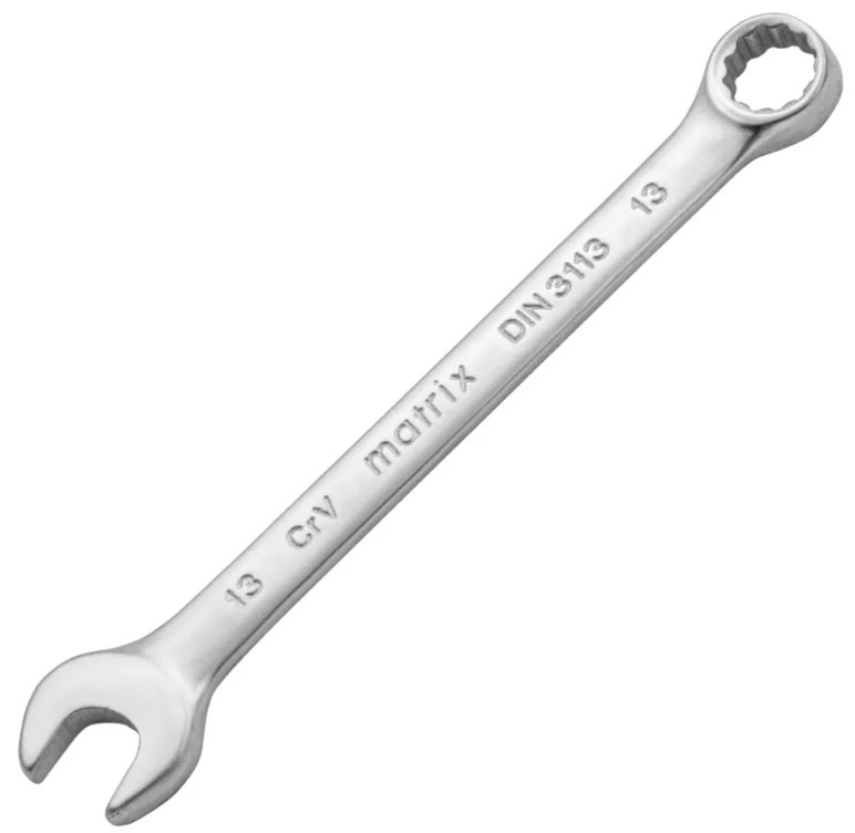 Ключ комбинированный Matrix 15109 из стали CrV, 13 мм, с покрытием «матовый хром»,пригодится при проведении ремонтных работ дома или в гараже. С его помощью можно осуществлять быстрый монтаж и демонтаж крепежных элементов. Кольцевой зев обеспечивает удобство работы благодаря углу наклона 15 градусов относительно плоскости инструмента.