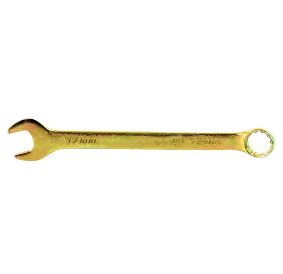Ключ комбинированный СИБРТЕХ желтый цинк 17мм 14982 - выполнен из прочной углеродистой стали и имеет высокую твердость рабочих частей. Подходит для частого использования при выполнении крепежных работ с резьбовыми соединениями. Желтое цинковое покрытие надежно защищает ключ от появления коррозии, благодаря чему срок службы инструмента увеличен.