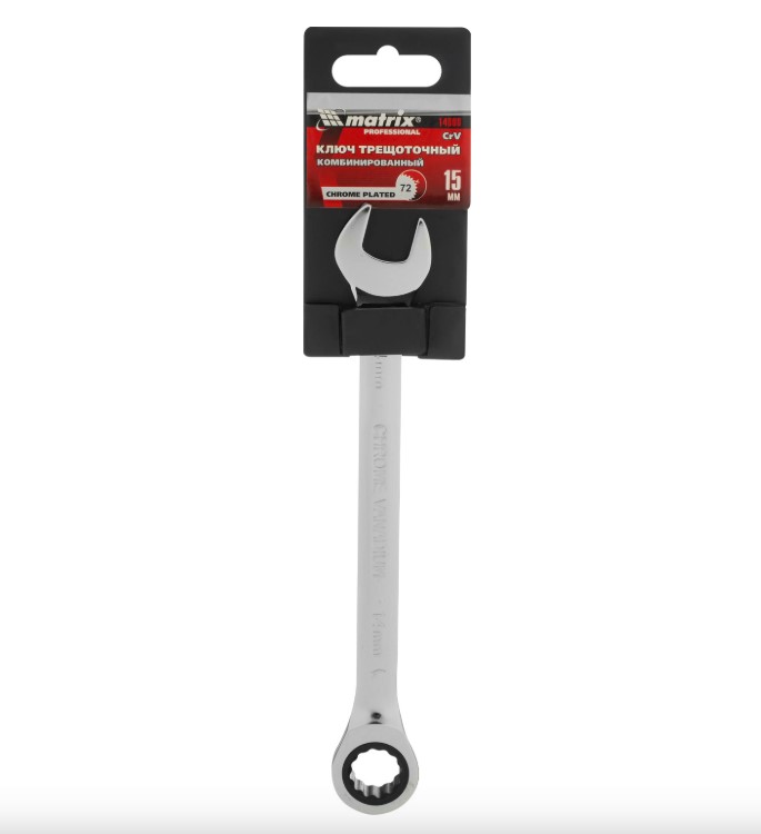 Ключ комбинированный трещоточный Matrix 14808 — это высококачественный инструмент, выполненный из прочной стали CrV с покрытием "зеркальный хром". Он идеально подходит для работы с болтами и гайками диаметром 15 мм, обеспечивая быстрое и эффективное их закручивание и откручивание. Уникальная конструкция рожковой части позволяет работать в условиях ограниченного пространства, а трещоточный механизм значительно облегчает труд в труднодоступных местах.