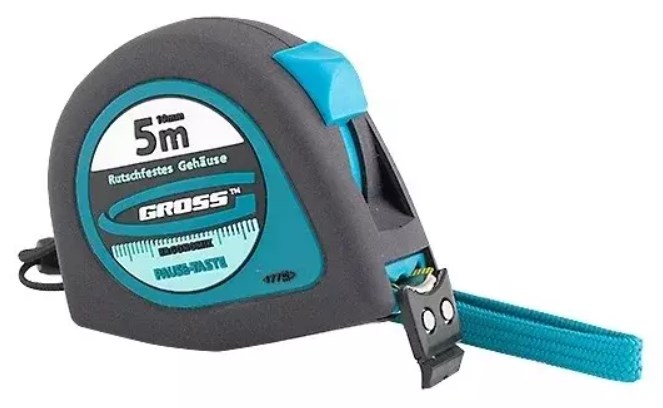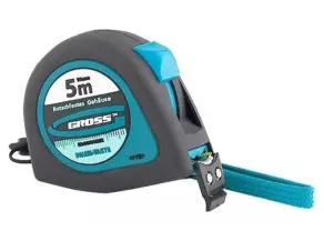 Рулетка Ergonomisch торговой марки GROSS с длиной ленты 5 м. Эргономичный корпус рулетки выполнен из ABS пластика (используется сырье BASF), который сохраняет работоспособность механизма при падении с высоты до 1,5 м. Измерительное полотно рулетки шириной 19 мм обладает высокими упругими свойствами, что позволяет производить измерения в труднодоступных местах. Основание измерительного полотна оснащено обрезиненным магнитным зацепом True Zero (истинный ноль), который обеспечивает фиксацию не только на ровных, но и на округлых поверхностях (например, на трубах). Зацеп True Zero позволяет более точно производить замеры от нуля при внешних/внутренних замерах.