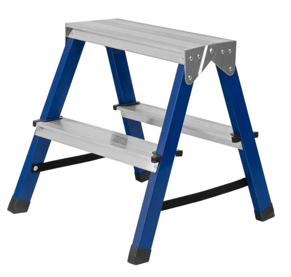 Стремянка Сибртех двусторонняя, 2 ступени стальная — надёжная и устойчивая модель для выполнения различных бытовых и хозяйственных задач. Конструкция выполнена полностью из прочной стали, что обеспечивает высокую прочность и долговечность изделия. Двустороннее исполнение позволяет безопасно использовать стремянку с обеих сторон, повышая удобство и эффективность работы. Широкие стальные ступени (80 мм) с противоскользящей поверхностью обеспечивают устойчивость и безопасность при подъёме. Изделие выдерживает нагрузку до 150 кг и имеет высоту до рабочей площадки 0,435 м, что делает его практичным и удобным для повседневного использования дома, на даче или в мастерской.