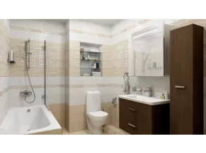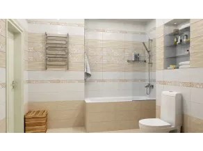 Плитка для ванной коллекции плитки Alanna от Уралкерамика имеет интересную поверхность с эффектом мятой бумаги, дополненным красивой графикой. Элементы с эффектным вензелем подчеркивают благородный характер плитки, а нежные бежевые цвета создают пространство свежее, легкое и изящное.