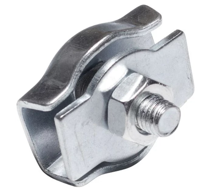 Зажим предназначен для надежного крепления и фиксации стальных тросов диаметром до 2 мм. Используется при монтаже растяжек, подвесных конструкций, ограждений, а также в хозяйственных и строительных работах. Одинарная конструкция обеспечивает простоту установки и надежное удержание троса.