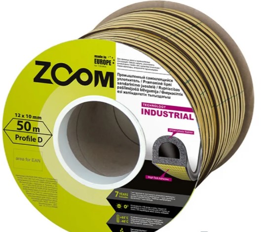 Самоклеящийся уплотнитель ZOOM Industrial промышленного назначения. Подходит для теплоизоляции промышленных сооружений конструкций, а также гаражных ворот..