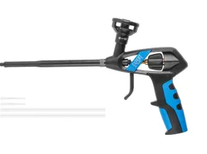 Особенностью пистолета является игольчатый клапан, который обеспечивает более точное и аккуратное нанесение пены. Тефлоновое покрытие ствола и адаптера предотвращает прилипание пены и облегчает очистку инструмента после использования.
