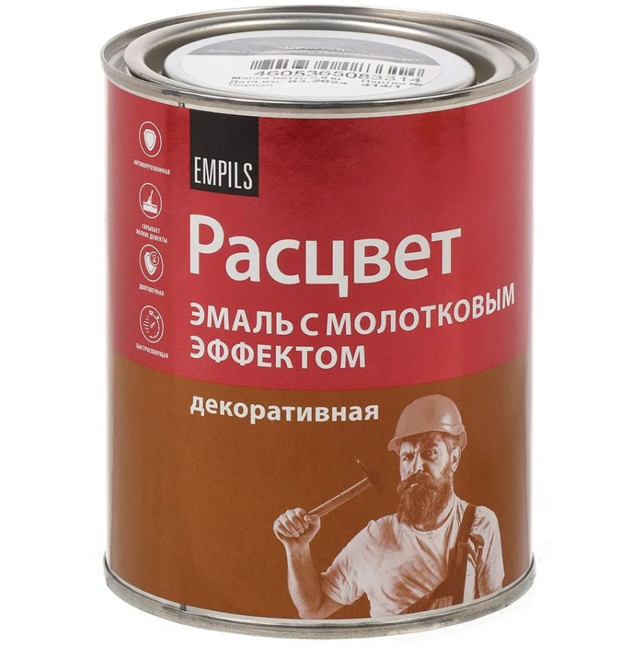 Эмаль Расцвет молотковый эффект алкид-стирол чёрная 0,8 кг (3314) предназначена для декоративной и защитной окраски металлических, деревянных, бетонных и оштукатуренных поверхностей. Покрытие образует прочную эмаль с характерной молотковой фактурой и глубоким чёрным оттенком, который придаёт изделиям строгий, выразительный вид и помогает скрыть мелкие неровности основания. Материал совмещает свойства антикоррозионного грунта, защитного покрытия и декоративной отделки. Устойчив к влаге, механическим нагрузкам и атмосферным воздействиям, подходит для наружных и внутренних работ.