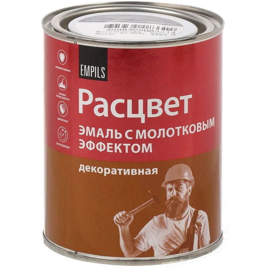 Эмаль Расцвет молотковый эффект алкид-стирол золотистая 0,8 кг (3338) предназначена для декоративной и защитной окраски металла, древесины, бетона, штукатурки и других подготовленных оснований. Покрытие образует прочную плёнку с характерной молотковой фактурой и насыщенным золотистым оттенком, который подчёркивает декоративность изделия и скрывает мелкие неровности поверхности. Эмаль сочетает в себе свойства антикоррозионного грунта и декоративной отделки, устойчива к влаге, истиранию, механическим воздействиям и атмосферным условиям, подходит для наружных и внутренних работ.