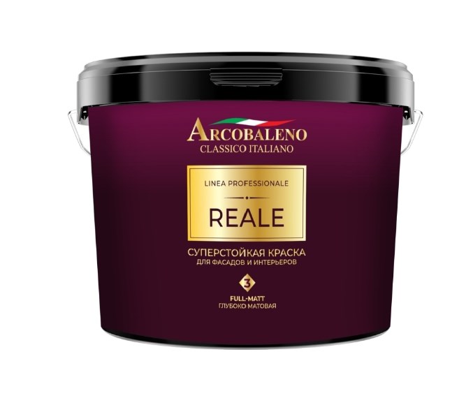- Краска ARCOBALENO Reale суперстойкая для фасадов и интерьеров 9л база С