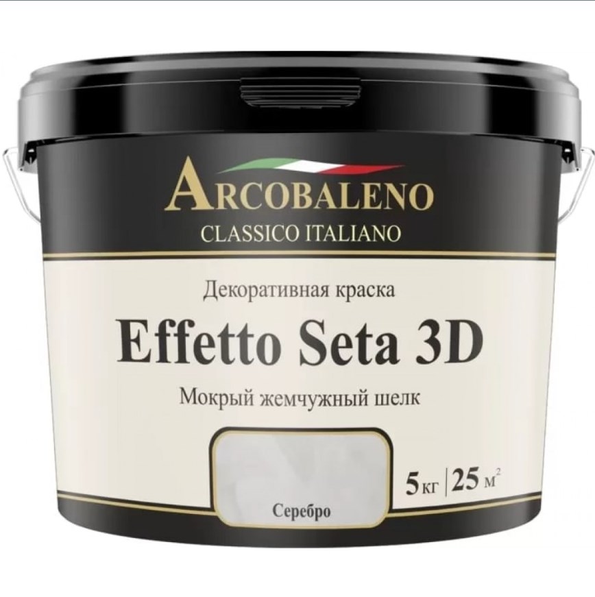 - Краска декоративная "Arcobaleno Effeto Seta 3D" база: серебро 5 кг