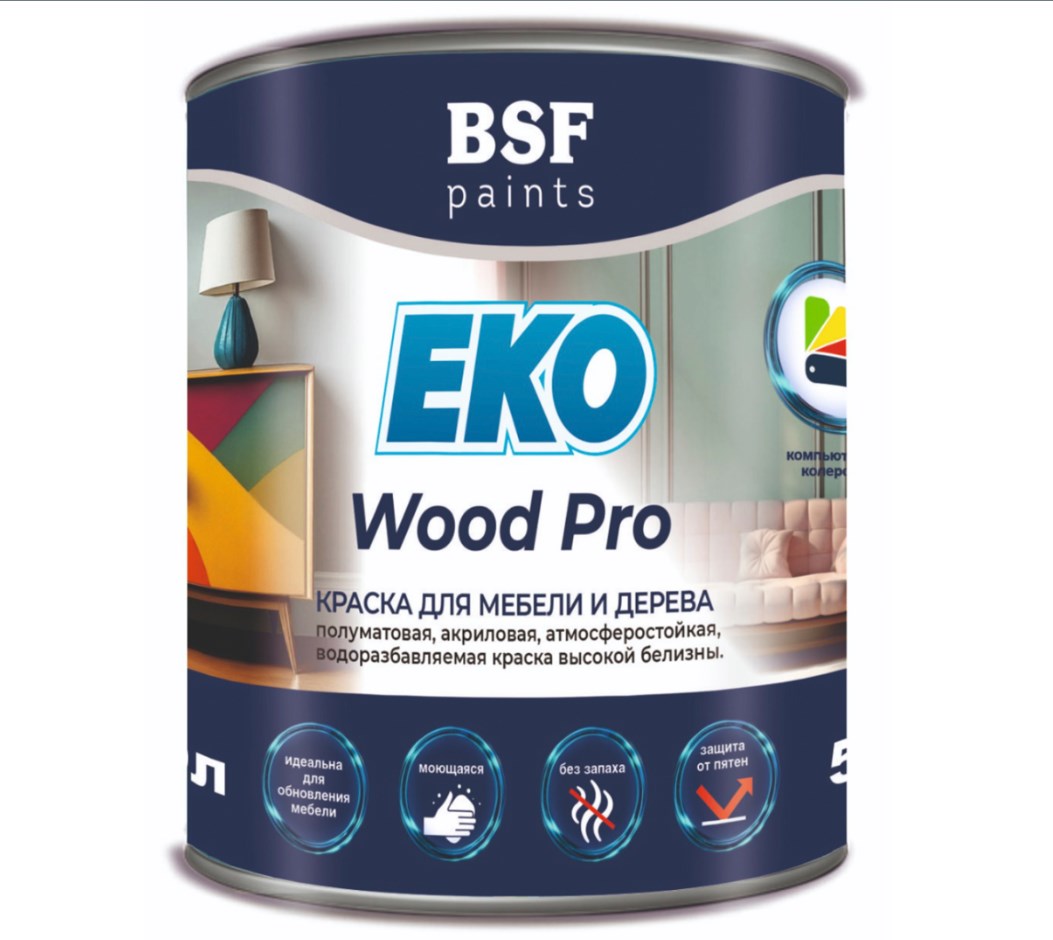 - Краска Радуга Eko Wood Pro акриловая полумат для дерева и мебели 0,9л
