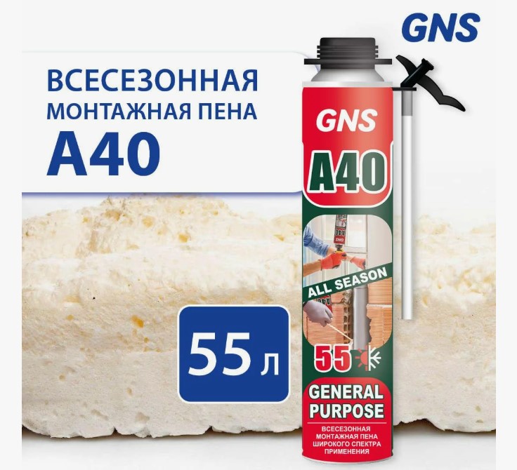 Пена монтажная всесезонная GNS A40 750мл/800г 55л