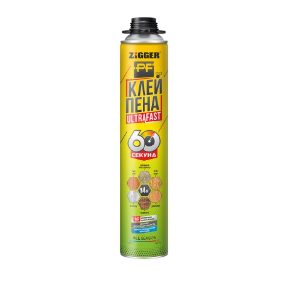 - Клей пена Zigger PF ULTRAFAST 60сек проф всесезон 750мл 830г 01-03-60