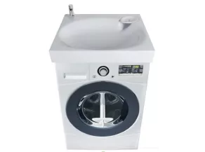 Раковина Lavanderia предназначена для размещения над стиральной машиной. Слив расположен рядом со смесителем и скрыт декоративной планкой, таким образом оставляя как можно больше места под раковиной. Раковина изготовлена из ударопрочной и экологичной полимерной керамики – Polytitan. Гофрированная сифон wirquin и кронштейны для монтажа в комплекте.