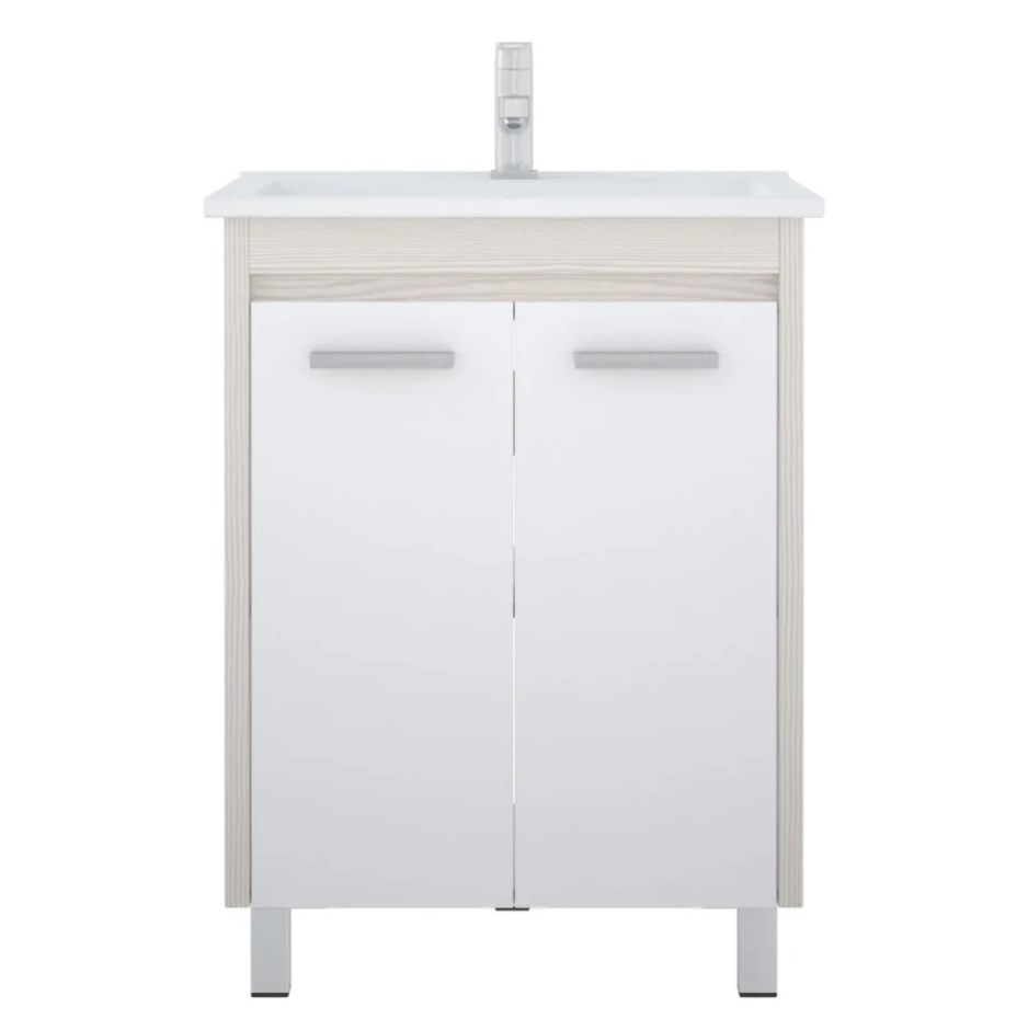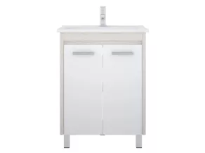 Тумба с встроенной мойкой «Оскар 65» из серии Лорена от Corozo — стильное и практичное решение для ванной комнаты, объединяющее мебель и умывальник в одном элегантном комплекте. Дизайн выполнен в линейном стиле (Line): строгая геометрия, лаконичность форм и гармоничное сочетание цветов. Тумба снабжена двумя распашными дверцами, за которыми скрыты полки для хранения, что помогает скрыть коммуникации и поддерживать порядок.