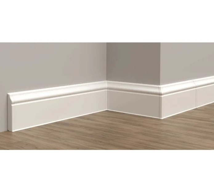 - Плинтус 80мм 001 Белый 2,2м Идеал Дюра напольный фигурный