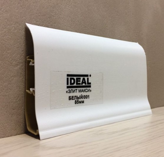 - Плинтус К-П85 №001 Белый с центр.планкой Идеал Классик 2,2м