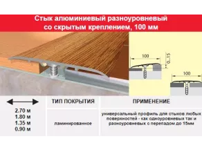 - Порог стык с дюбель разноуровневый 100мм 0,9м ясень серый