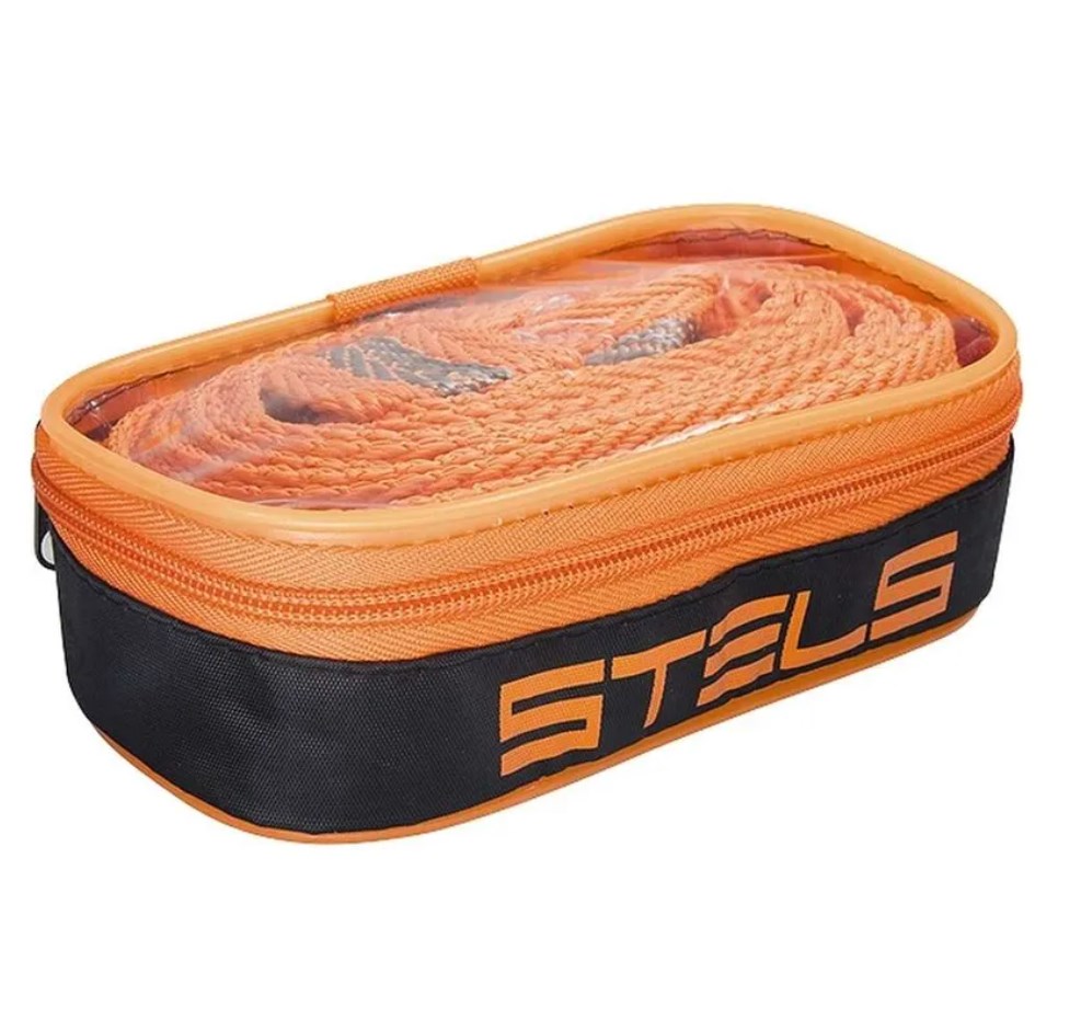 Трос буксировочный STELS 3.5т 5м 54379 - поставляющийся в сумке на молнии, используется для буксировки на гибкой сцепке легковых автомобилей массой до 3,5 тонн. Выручит автолюбителя в сложной ситуации на дороге: если закончилось топливо, сломался двигатель, застряли колеса и т.д.