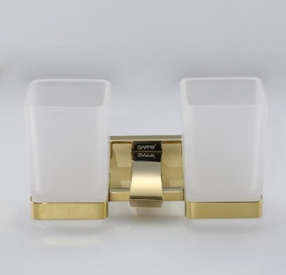 Двойной стакан с держателем Gappo G0708-3 сделан из прочного стекла, сам держатель выполнен из латуни в цвете золото. Настенный способ установки совобождает место на раковине или в шкафу ванной комнаты. Практичное и гигеничное решение для вашего санузла.