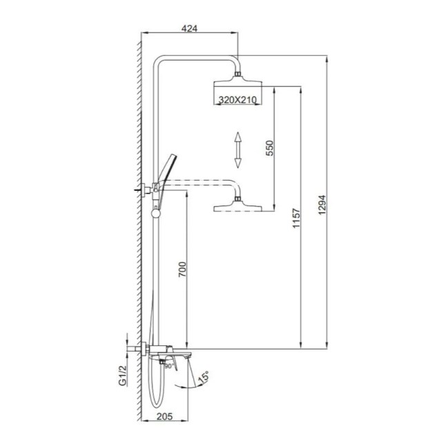 Основные характеристики Покрытие хром Тип душевой набор (гарнитур) Материал лейки абс-пластик Материал стойки латунь Материал верхнего душа абс-пластик Способ монтажа настенный Встраиваемый монтаж Нет Присоединительный размер 1/2 Форма лейки прямоугольная Цвет/Оттенок хром Высота душевой стойки 129.0 см S-образные эксцентрики Да Дополнительные характеристики Держатель для душевой лейки штанга Комплектация смеситель, излив для наполнения ванны, верхний душ, ручной душ (лейка+шланг), держатель для душевой лейки, лейка для душа, аэратор Размеры стойки для душа 1294*424*205 Размеры верхнего душа 320*210 Длина душевого шланга 1500.0 мм Дополнительная информация Душевая система в комплекте с лейкой и со шлангой и с верхним тропическим душем хромированного цвета. Корпус из латуни. Подходит к душу и для ванны. Страна-производитель Китай Особенности Количество режимов лейки 3 Режим тропический дождь Да Количество режимов верхнего душа 2 Режимы лейки смешанная струя Форма верхнего душа прямоугольная Переключатель режим