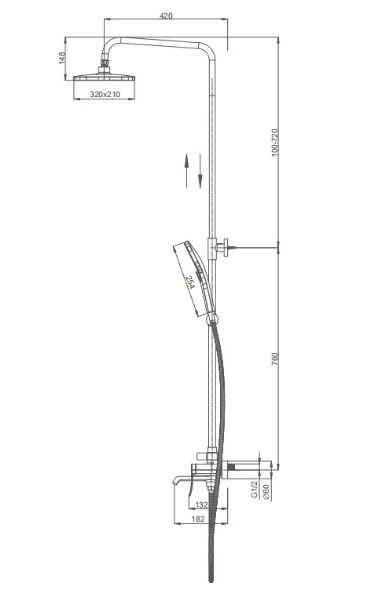 Система включает просторный верхний душ размером 320x210 мм для комфортного покрытия струёй, душевую лейку с 3 режимами подачи воды и гибкий шланг длиной 1,5 м (S401.15.03). Аэратор S540.733 способствует равномерному потоку и более экономичному расходу воды.