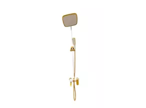 Корпус и штанга выполнены из металла с хромированным или никелированным покрытием, обеспечивающим защиту от коррозии, блестящий внешний вид и лёгкость в уходе. Материал устойчивый к влажности. Крепление настенное. Возможна регулировка высоты ручной лейки по штанге.