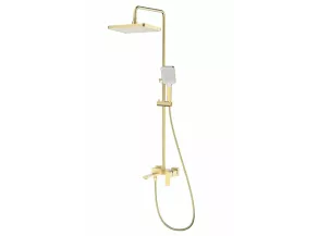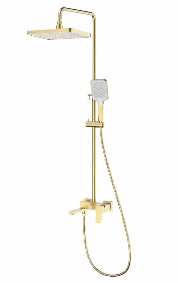 Душевая система для ванны SPLENKA S01.24.03 матовое золото. Материал - латунь. Керамический картридж 35мм. Переключатель с керамическими пластинами (угол поворота – 180°). Переключатель в изливе. Излив - функция переключения. Аэратор. Душевой шланг 1.5м. Душевая лейка - 3 режима. Верхний душ - 320*210мм. Эксцентрики с отражателями, держатель лейки, крепеж штанги.