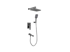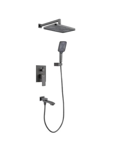 Встраиваемая душевая система Raglo R01.27.09 в графитовом матовом цвете сочетает современный дизайн и функциональность, обеспечивая комфортный душ и наполнение ванны. Корпус выполнен из прочной латуни с защитным покрытием, устойчивым к коррозии и перепадам температуры, а однорычажное управление с керамическим картриджем обеспечивает плавное регулирование воды. Система оснащена верхним «тропическим» душем 340*220 мм, изливом для ванны с переключателем, ручным душем с тремя режимами струи и гибким шлангом длиной 1,5 м, а в комплект входят смеситель с внутренней частью, держатель лейки, кронштейн и крепеж. Стильное матовое покрытие придает ванной комнате аккуратный современный вид, а качественные материалы гарантируют долговечность при хранении в сухом помещении при температуре +5…+40?°C.