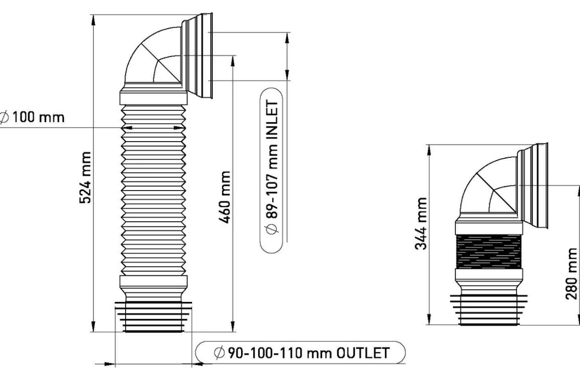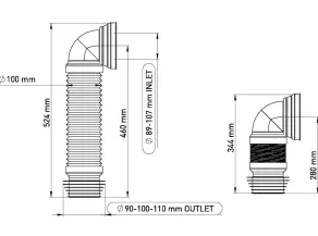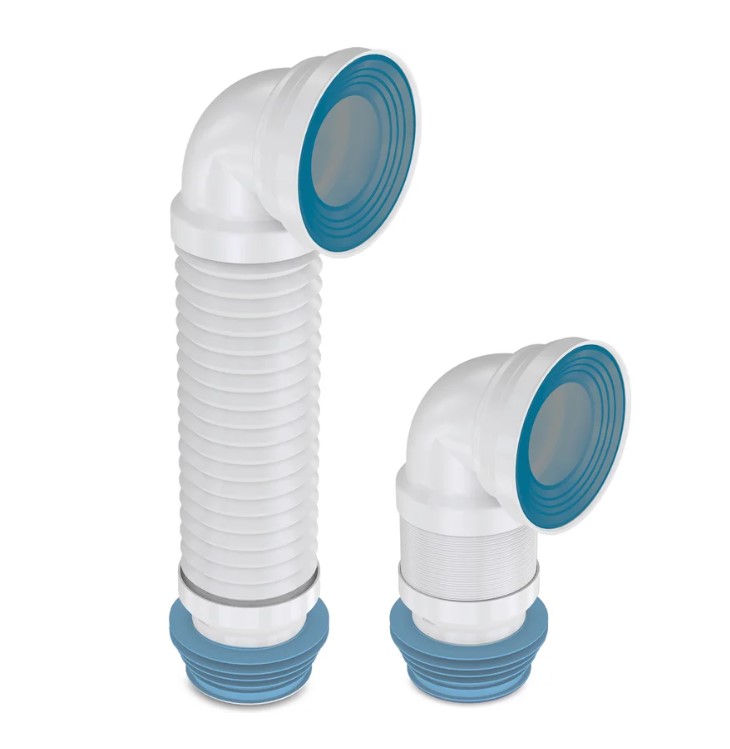Практичная армированная гофра с изгибом 90градусов из первичного полипропилена обеспечивает быстрое и герметичное подключение унитаза к канализации.