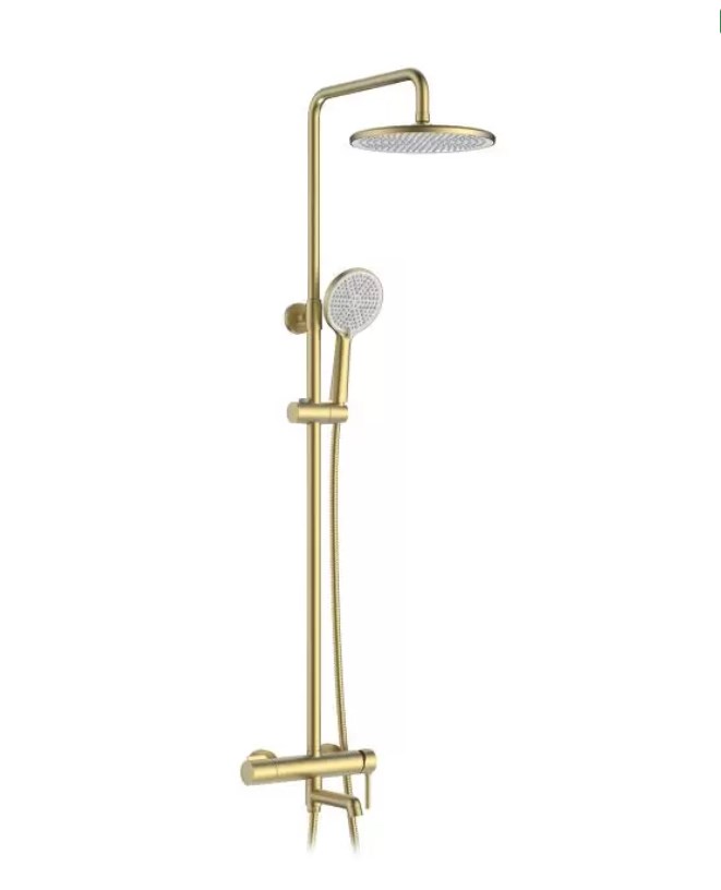 Душевая система Raglo R20.24.03 сатин-золото — современное и функциональное решение для ванной комнаты, объединяющее стильный дизайн и комфорт в использовании. Корпус выполнен из прочной латуни с износостойким сатиновым покрытием «золото», что обеспечивает долговечность, защиту от коррозии и презентабельный вид. Система оснащена тропическим верхним душем диаметром 250 мм, создающим мягкий и равномерный поток воды, ручной душевой лейкой с тремя режимами струи и шлангом длиной 1,5 м, а также однорычажным смесителем с керамическим картриджем 35 мм и поворотным изливом для удобного переключения между режимами. Душевая штанга регулируется по высоте (примерно 113–148 см), что позволяет настроить систему под рост пользователя. Комплект включает все необходимые элементы для настенного монтажа: держатель ручной лейки, эксцентрики с отражателями и крепеж. Raglo R20.24.03 идеально подходит как для использования в душевой кабине, так и для наполнения ванны, сочетая элегантный внешний вид, надёжность и максимальный комфор