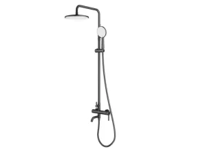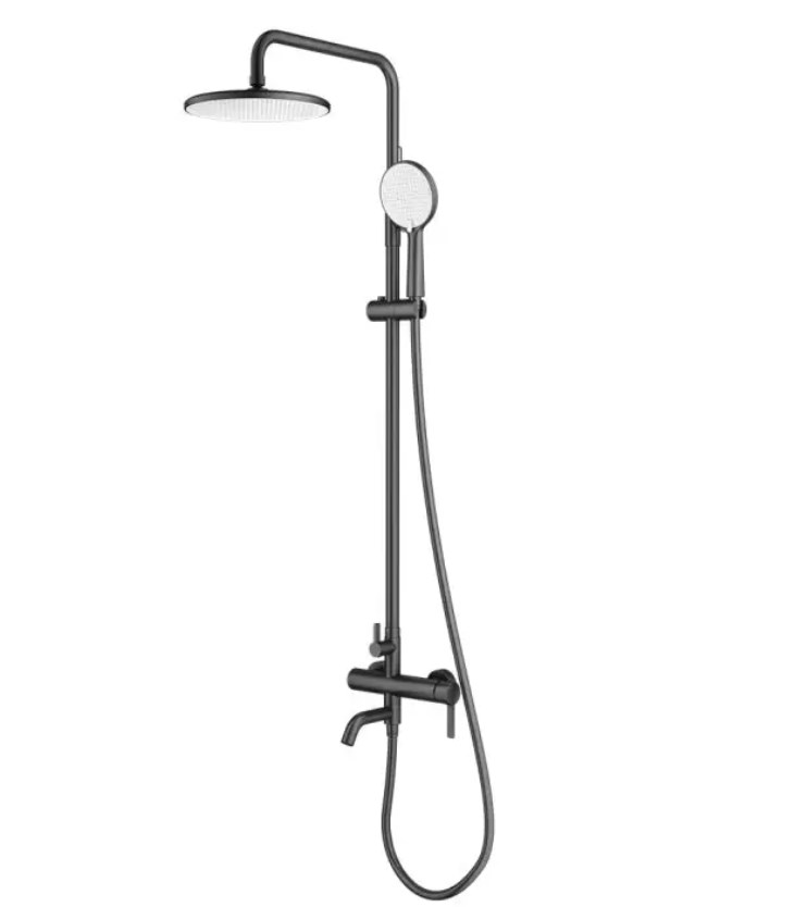 Душевая система Splenka S221.24.09 в цвете графит — это стильная и надёжная стойка для ванной комнаты, сочетающая современный дизайн и продуманную функциональность. Корпус выполнен из прочной нержавеющей стали с матовым графитовым покрытием, которое устойчиво к коррозии и сохраняет аккуратный внешний вид долгие годы. Система оснащена тропическим верхним душем диаметром 250 мм, обеспечивающим мягкий и равномерный поток воды, а также ручной лейкой с тремя режимами для комфортного использования. В комплект входит гибкий шланг длиной 1,5 м, регулируемая по высоте душевая штанга, удобный держатель лейки и однорычажный смеситель с керамическим картриджем и поворотным изливом, позволяющим быстро переключаться между ручным душем, верхним душем и наполнением ванны. Настенный монтаж и стандартные подключения G 1/2 делают установку простой и универсальной. Splenka S221.24.09 — это стиль, надежность и удобство, идеально подходящие для современной ванной комнаты.