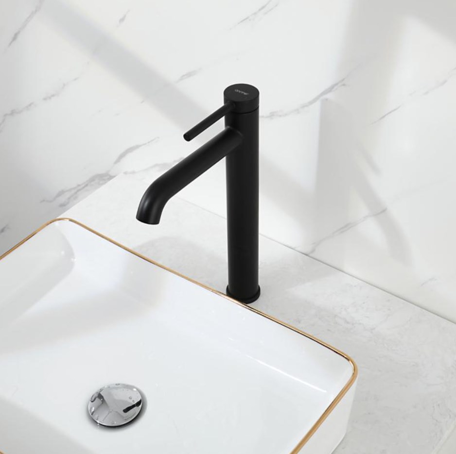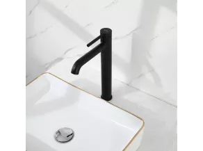 Смеситель Gappo G1006-26 — высокий однорычажный смеситель для раковины, изготовленный из прочной латуни, что обеспечивает долгий срок службы и устойчивость к коррозии. Он рассчитан на монтаж в одно отверстие и оснащён гибкой подводкой . Внутри смесителя установлен керамический картридж диаметром 35 мм, что обеспечивает плавную и точную регулировку воды без рывков, стабильную температуру и надёжность работы. Излив стационарный, высокого типа — высота смесителя составляет около 33,8 см, излива — 25,3 см, а длина вылета — около 18,5 см, что делает использование смесителя удобным для умывальников и высоких чаш. Аэратор в изливе формирует мягкую, комфортную струю воды, экономя её и снижая брызги. Фактурное матовое покрытие (чаще — чёрное или графитовое) даёт смесителю современный и сдержанный внешний вид, хорошо вписывающийся в интерьер ванной комнаты, особенно в стиле минимализм, модерн или хай-тек.
