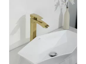 Смеситель Gappo G1007-32 — стильный и надёжный однорычажный смеситель для раковины (умывальника), выполненный из латуни и оснащённый высоко поднятым стационарным изливом. Его корпус обеспечивает долговечность и устойчивость к коррозии, а керамический картридж диаметром 35 мм даёт плавное, точное управление температурой и напором воды. Излив достаточно высокий и длинный, что удобно для мойки рук, лица или наполнения ёмкостей — особенно хорошо смотрится с накладными чашами-раковинами. Смеситель комплектуется гибкой подводкой , крепёжной гайкой и готов к стандартной установке на одно отверстие на столешницу или раковину. Золотое покрытие придаёт изделию элегантный, премиальный внешний вид, подчёркивая стиль ванной комнаты и делая её обстановку более утончённой.