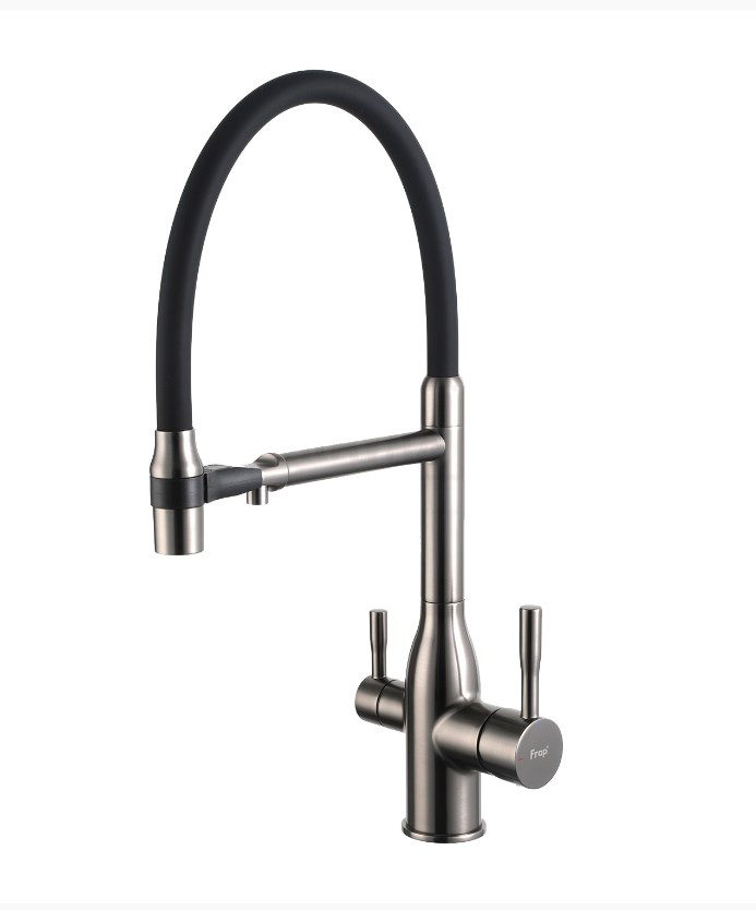 Смеситель 4398-9 для кухни с подключением фильтра оруж сталь/черный Frap