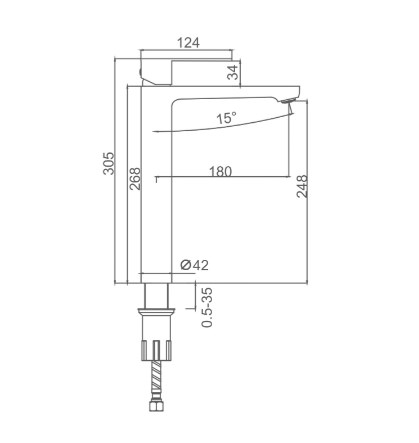 Излив оснащён аэратором, который помогает экономить воду, создавая мягкий и равномерный поток. Крепление смесителя осуществляется при помощи гайки, что обеспечивает надёжную фиксацию на раковине.