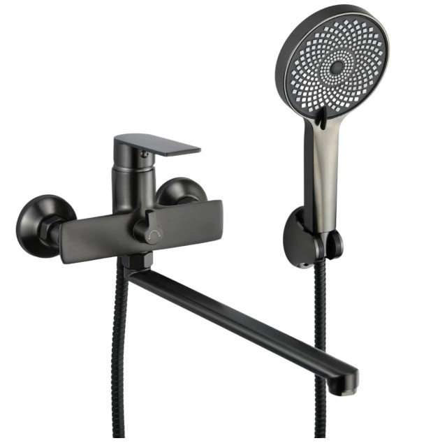 Смеситель JP0004407 для ванны с длинным гусаком Atlas Jupiter в графитовом цвете — это стильное и функциональное решение для вашей ванной комнаты, сочетающее современный дизайн, практичность и удобство ежедневного использования. Он оснащён длинным поворотным изливом длиной 35 см, который обеспечивает удобный доступ к воде и делает наполнение ванны комфортным и лёгким. Корпус смесителя выполнен из прочного металлического сплава с графитовым покрытием, устойчивым к коррозии, влаге и механическим воздействиям, что обеспечивает долговечность изделия и аккуратный эстетичный внешний вид без сложного ухода. Однорычажный механизм с керамическим картриджем обеспечивает плавную и точную регулировку температуры и напора воды, делая процесс управления простым и удобным. Смеситель предназначен для настенного монтажа и комплектуется гибким душевым шлангом длиной 140 см, а также всеми необходимыми элементами для установки и подключения, что позволяет сразу приступить к эксплуатации. Универсальный графитовый цвет и сбалансир