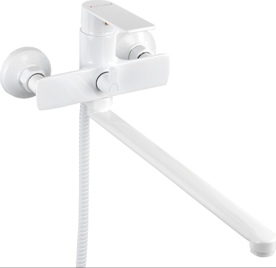 - СМЕСИТЕЛЬ JP0004403 для ванны,белый,с дл гус 35см,с подводкой 140см Atlas Jupiter