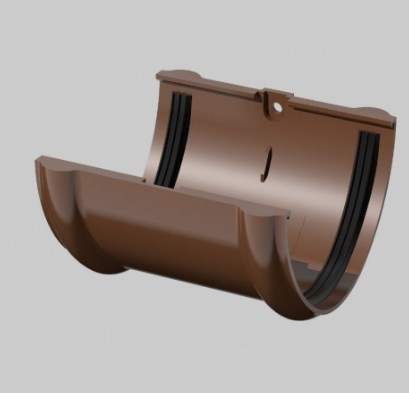 Соединитель желоба предназначен для соединения водосточных желобов в единую систему обеспечивает герметичность соединения. Крепление соединителя желоба к лобовой доске дает конструкции дополнительную жесткость, монтаж элемента не требует дополнительных кронштейнов желоба.