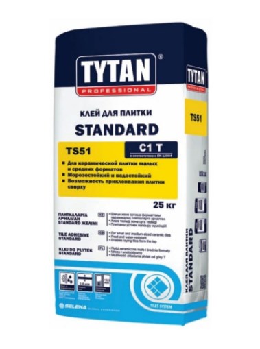 - Клей для плитки TYTAN PROFESSIONAL STANDART 25кг