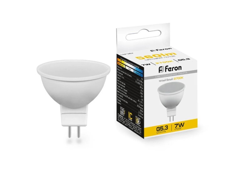 - 25235 Лампочка светодиодная Feron 7W 230V G5.3 2700K MR16 LB-26