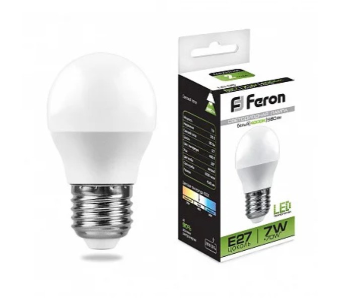 - 25482 Лампочка светодиодная Feron 7W 230V E27 4000K G45 LB-95