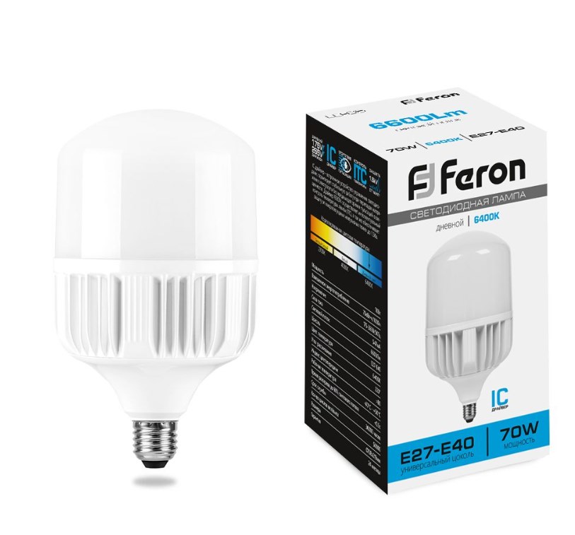 - Лампа светодиодная 70W 230V E27-Е40 6400K Т120 LB65 Feron 25783