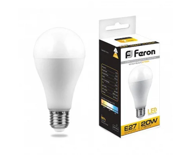 - 25787 Лампочка светодиодная Feron 20W 230V E27 2700K A65, LB-98
