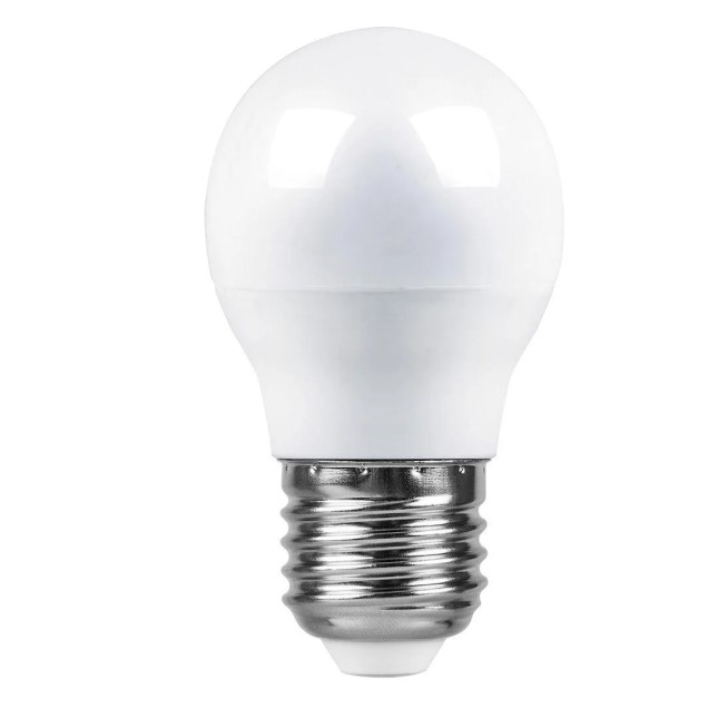 Лампа светодиодная FERON LB-550, G45 (шар малый), 9W 230V E27 6400К (дневной), рассеиватель матовый белый, 840Lm, угол рассеивания 220°, 80*45мм