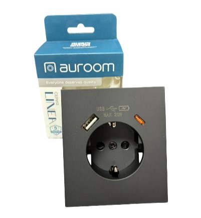 - 142102 Розетка USB+TYRE Auroom 1-ая 20W Linea Черный