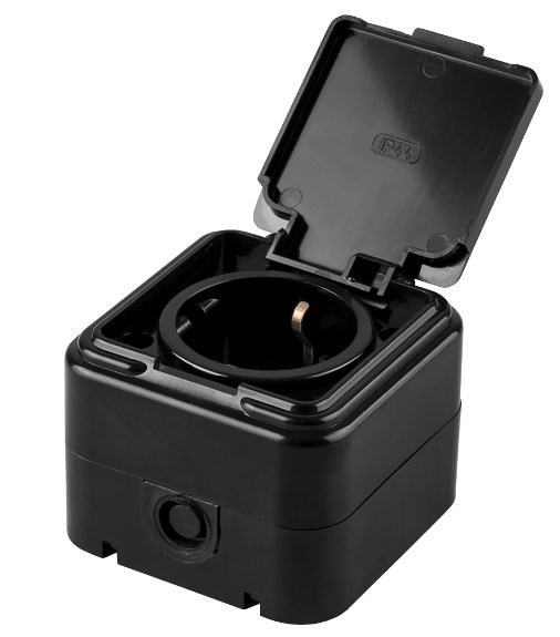 - 39514 Stekker Розетка 1-мест с крыш с защитой с/з 16А черный