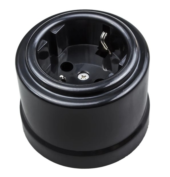 Розетка Ретро с заземлением (пластик) черный В1-101-23