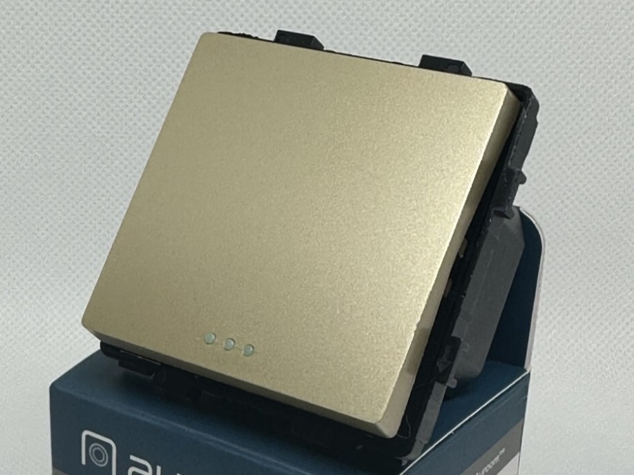 Выключатель Auroom 1-ый Linea с артикулом 130104 — это одноклавишный встраиваемый механизм элегантного золотистого цвета с матовым покрытием "soft", предназначенный для управления освещением.