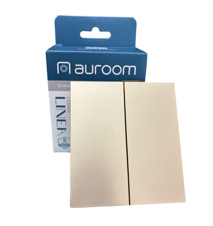 - 130204 Выключатель 2-клавишныйый Auroom серия Linea Золото soft 250V-10A