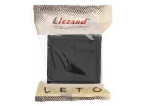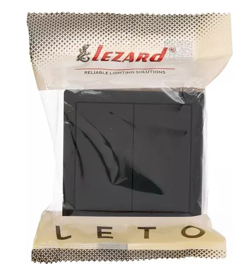 Выключатель двойной чёрный бархат LETO-LEZARD. Корпус выполнен из негорючего поликарбоната (РС). Внутренний механизм выполнены из негорючего поликарбоната, выдерживающий 850°С. Токопроводящие элементы выполнены из MS70 (70% меди,30% цинка).